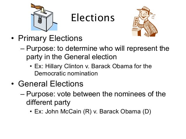 To pick who will run for president for each party. From policies to programs to everything in between youre voting for the leadersboth presidential. A General Election is the election in which all voters make the final choice from among the party nominees and the independent candidates for a specific office.