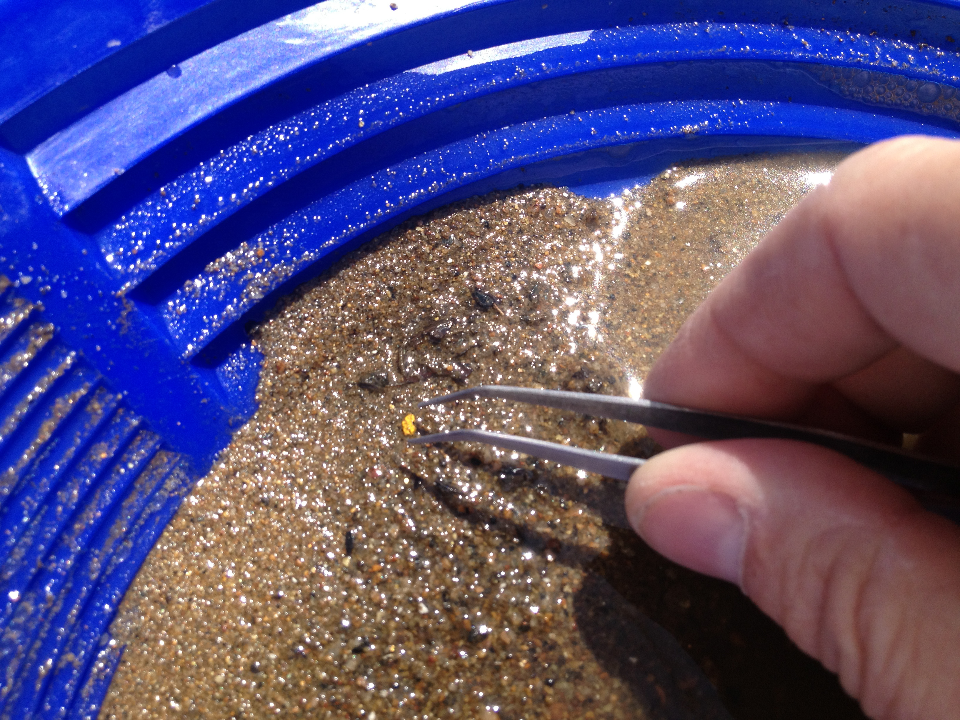 Normally gold looks like gold when you find it unless it is heavily alloyed with copper or silver. Real gold does not float or sparkle in the sunlight or change shade when taken out of direct sunlight.