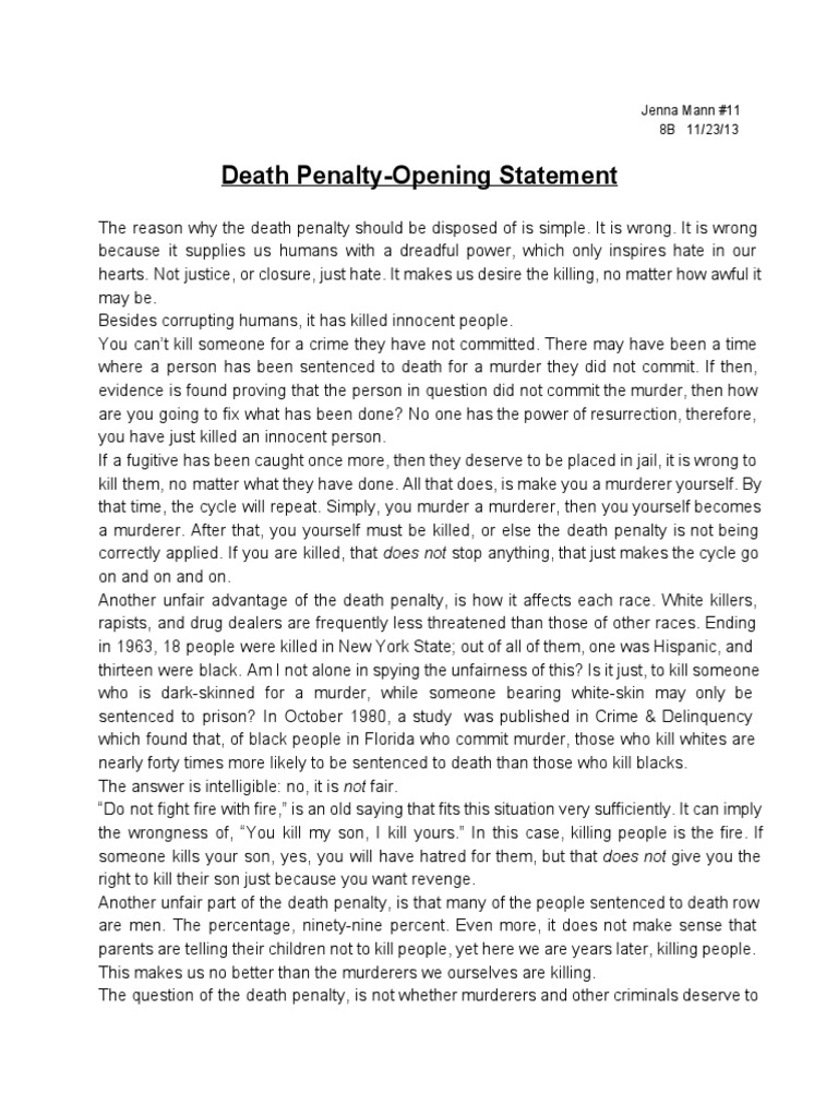 Death Penalty Opening Statement Capital Punishment Capital Punishment In The United States